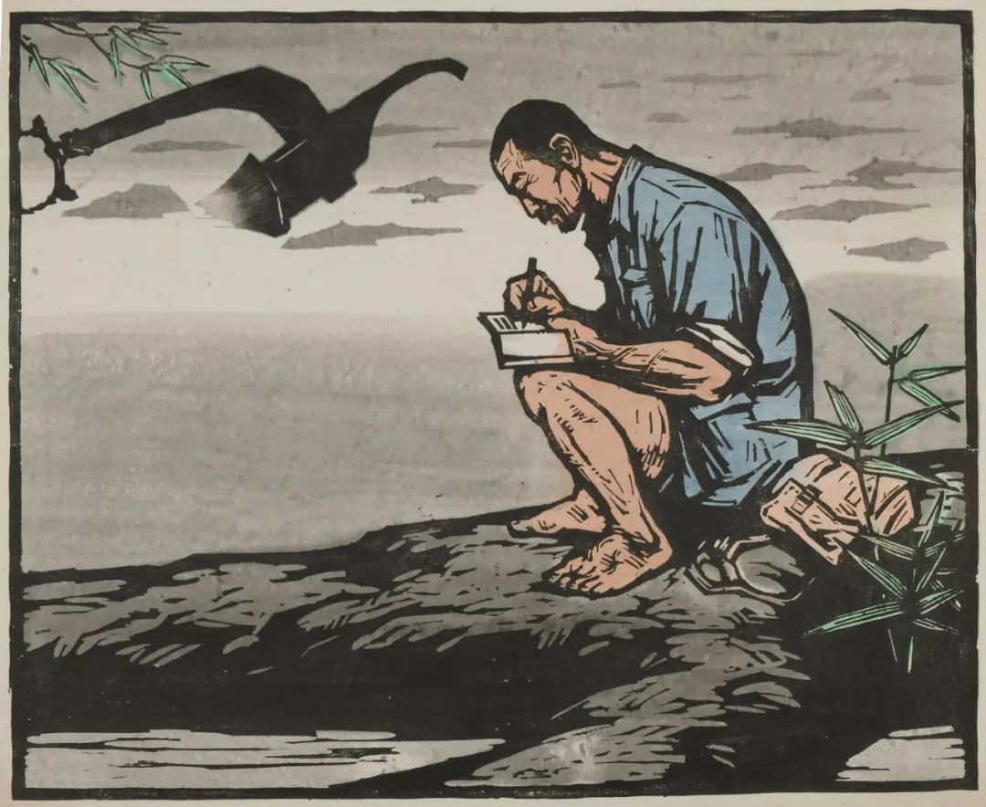 Woodcut print depicts an old farmer, 1962 [Photo/Official WeChat account of the Chongqing Art Museum]