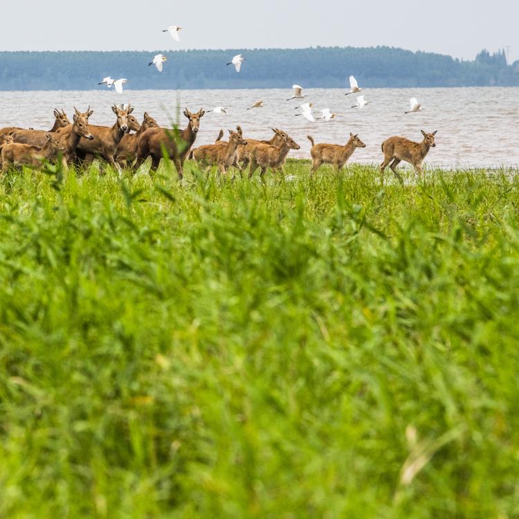 Milu frolic at Hubei nature reserve