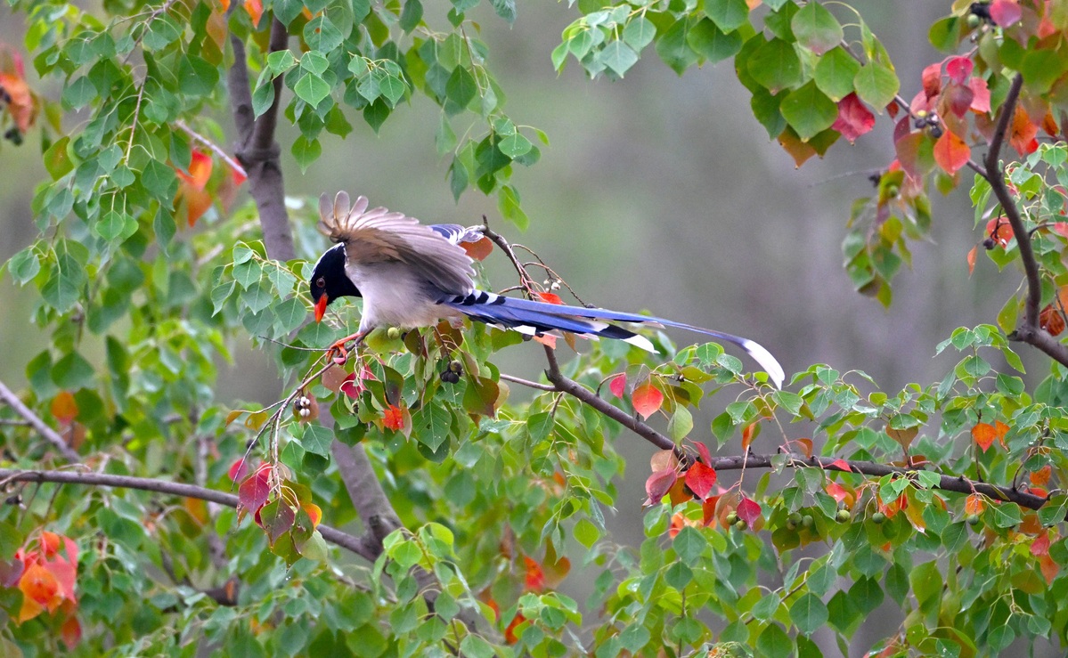 A photo shows a bird foraging for food on a tree in Yichang, Hubei province. [Photo by Liu Shusong/Provided to chinadaily.com.cn]