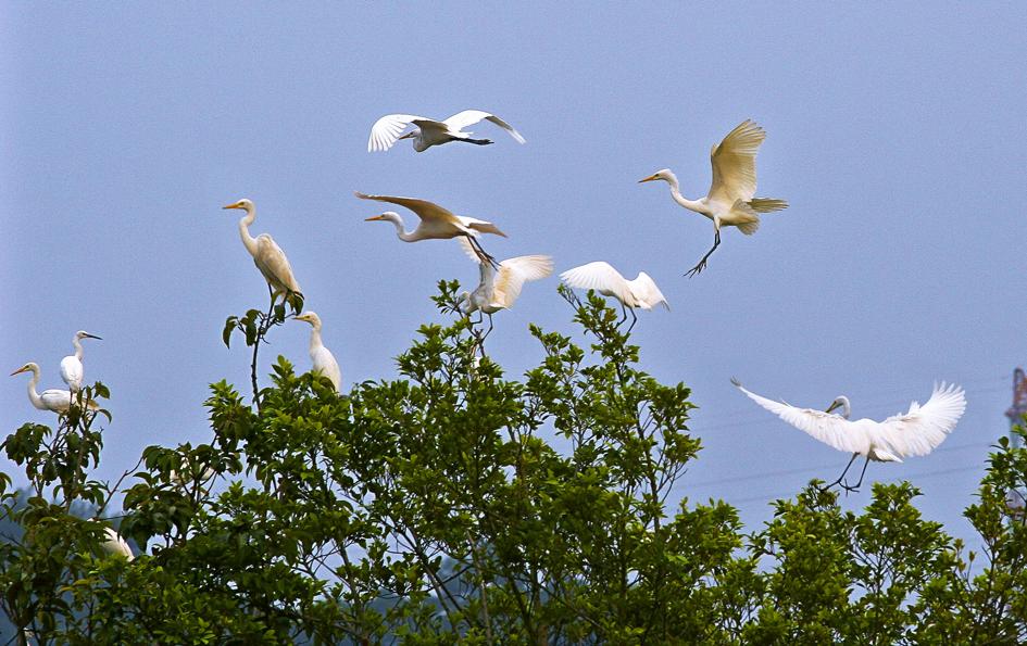 Wild egrets have recently become a major tourist attraction in the Conghua district of Guangzhou, Guangdong province. [Photo by Li Xiaotong/For chinadaily.com.cn]