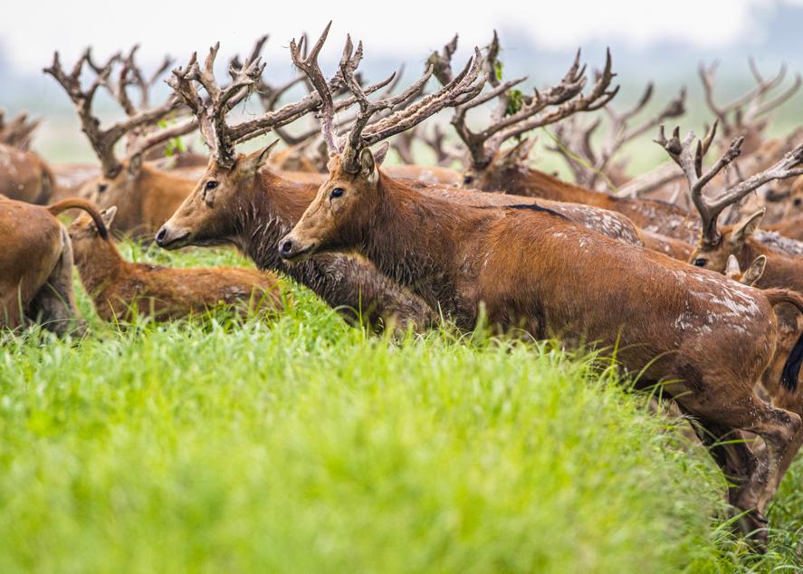 Milu are seen at a national nature reserve in Shishou, Hubei province, in late October. [Photo by Lei Gang/ for chinadaily.com.cn]
