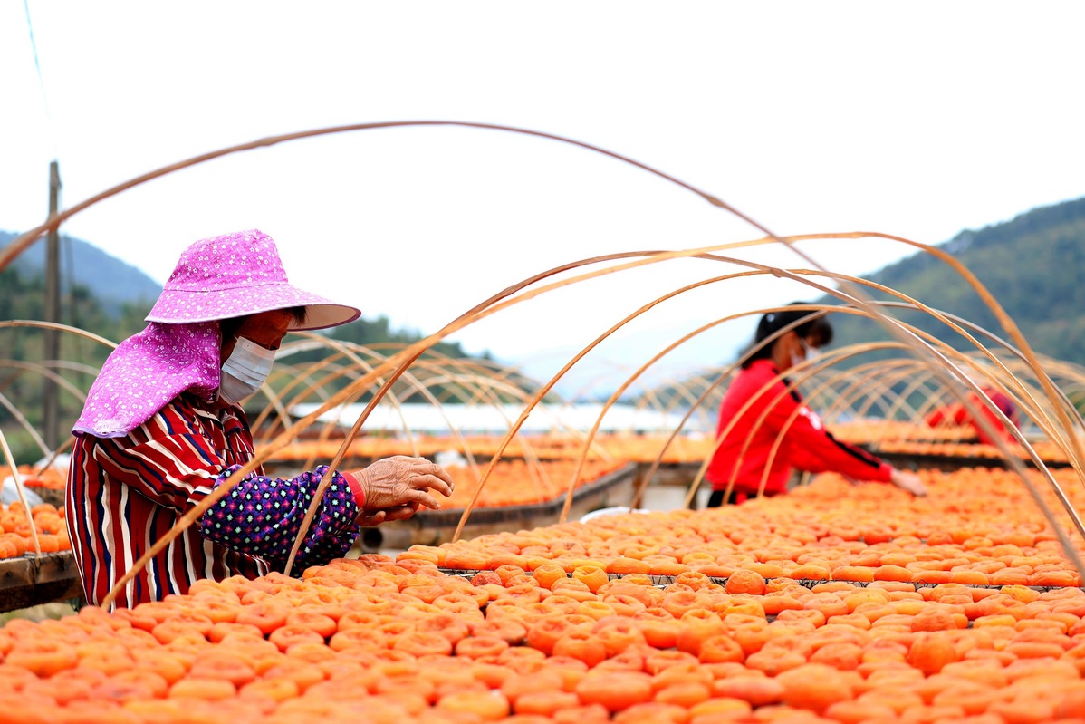 Farmers place persimmons on drying racks in the Yongding district of Longyan, Fujian province. [Photo by Huang Yuangui/For chinadaily.com.cn]