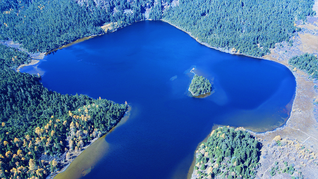 Aerial view of a blue lake surrounded by verdant trees in Niru village, Shangri-La, Southwest China’s Yunnan province [Photo/IC]