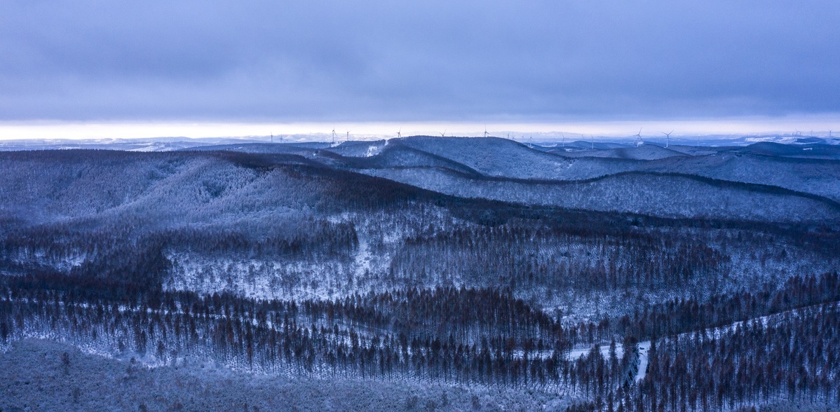 A light snowfall dusts the Saihanba Machinery Forest Farm in Chengde, Hebei province. [Photo by Lin Shuguo/For chinadaily.com.cn]
