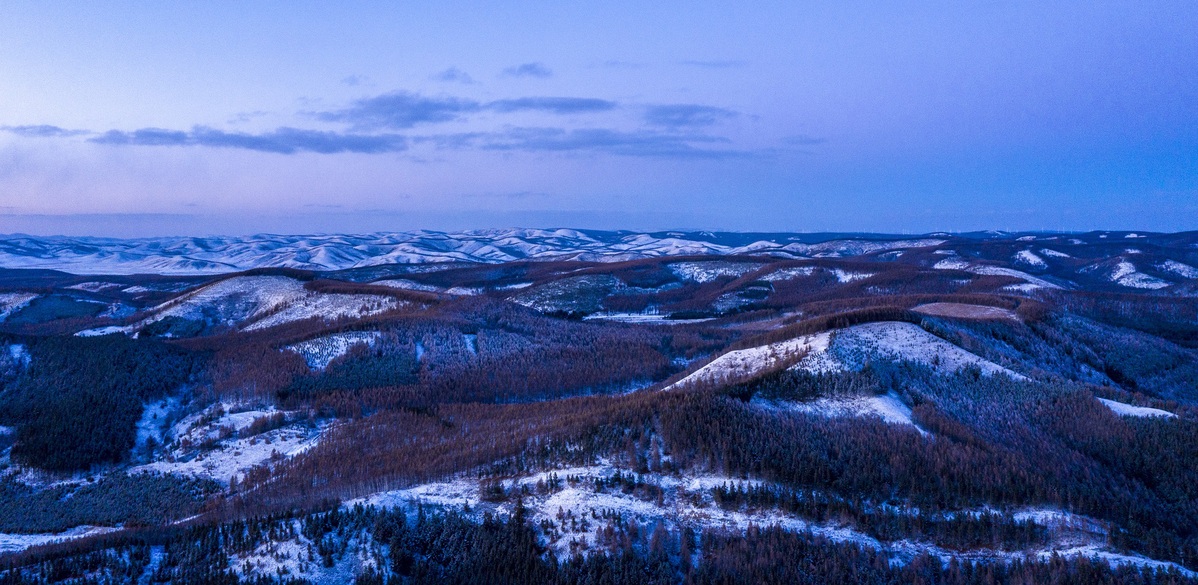 A light snowfall dusts the Saihanba Machinery Forest Farm in Chengde, Hebei province. [Photo by Lin Shuguo/For chinadaily.com.cn]