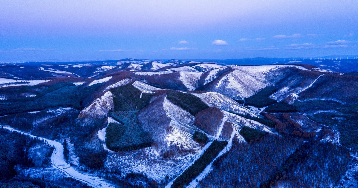A light snowfall dusts the Saihanba Machinery Forest Farm in Chengde, Hebei province. [Photo by Lin Shuguo/For chinadaily.com.cn]