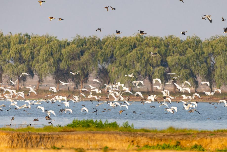 Rare and endangered birds such as Baer's pochards, white cranes and oriental white storks have emerged in the lake's wetland, according to the National Forestry and Grassland Administration.