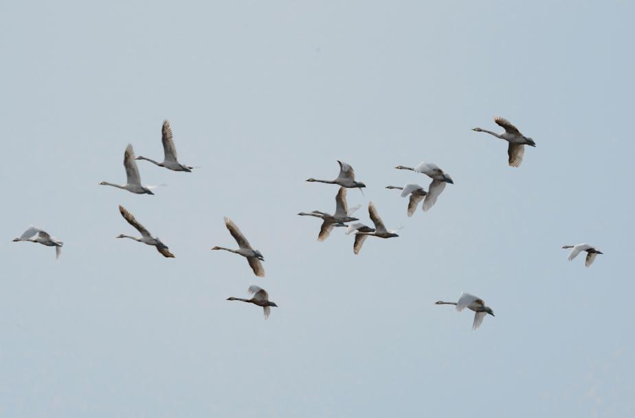 A flock of white swans inhabit Yanghe wetland in Xuanhua district, Zhangjiakou, North China's Hebei province. [Photo by Chen Xiaodong and Li Yanxue/For chinadaily.com.cn]