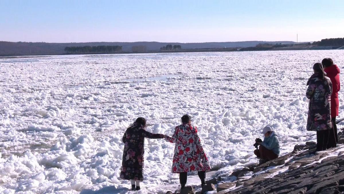 Residents take photos along the bank of the Heilong River on the Sino-Russia border in Huma county in the Daxinganling region of Heilongjiang province. [Photo by Wang Ting/For chinadaily.com.cn]