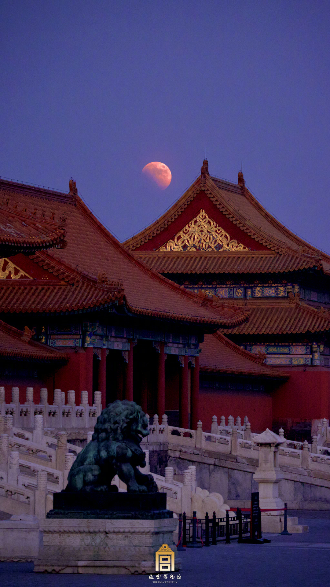 The Palace Museum in Beijing as the total lunar eclipse appears on the evening of Nov 8 [Photo/Official Weibo account of the Palace Museum]