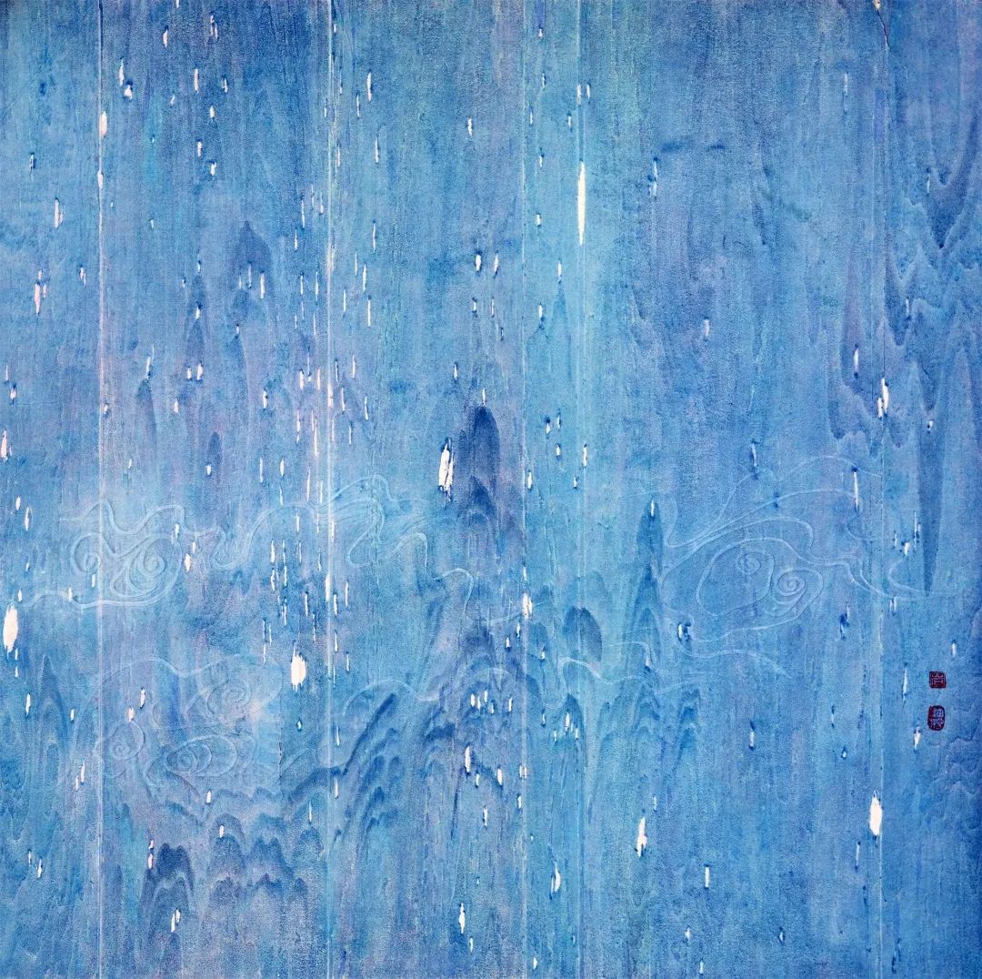 Watermark woodcut print showing rainfall, Qin Yan, 2022 [Photo/Official WeChat account of the Jiangxi Art Museum]