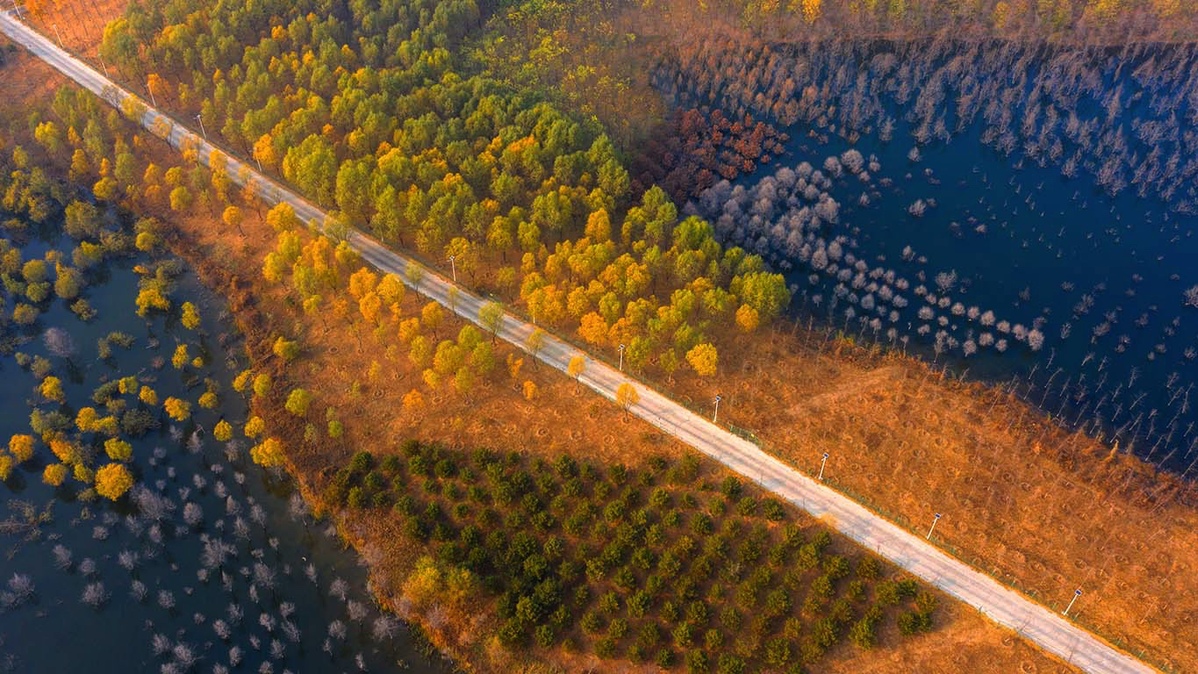 Flowing through Hebei province, Beijing, and Tianjin, the #ChaobaiRiver covers a total length of 467 kilometers. In late autumn, the river is surrounded by colorful trees, showcasing a pretty scenery.