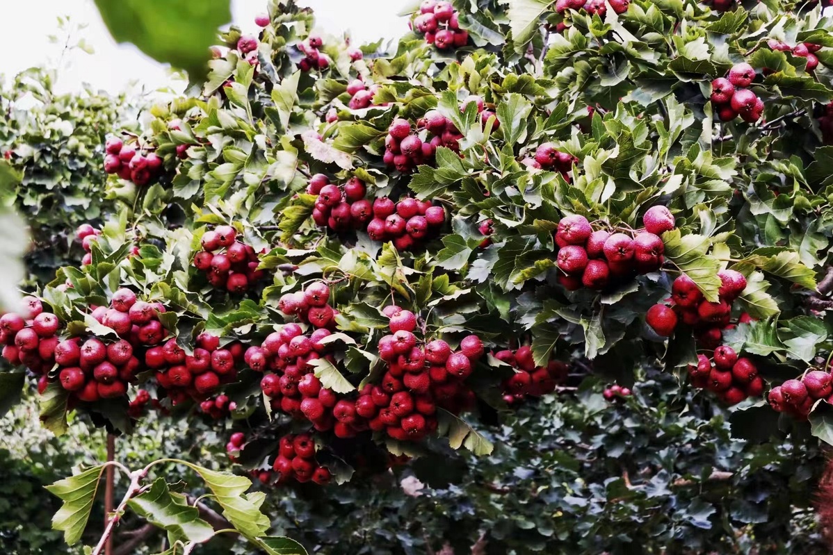 A photo shows red haws growing on hawthorn trees in Boye county of Baoding, Hebei province. [Photo provided to chinadaily.com.cn]