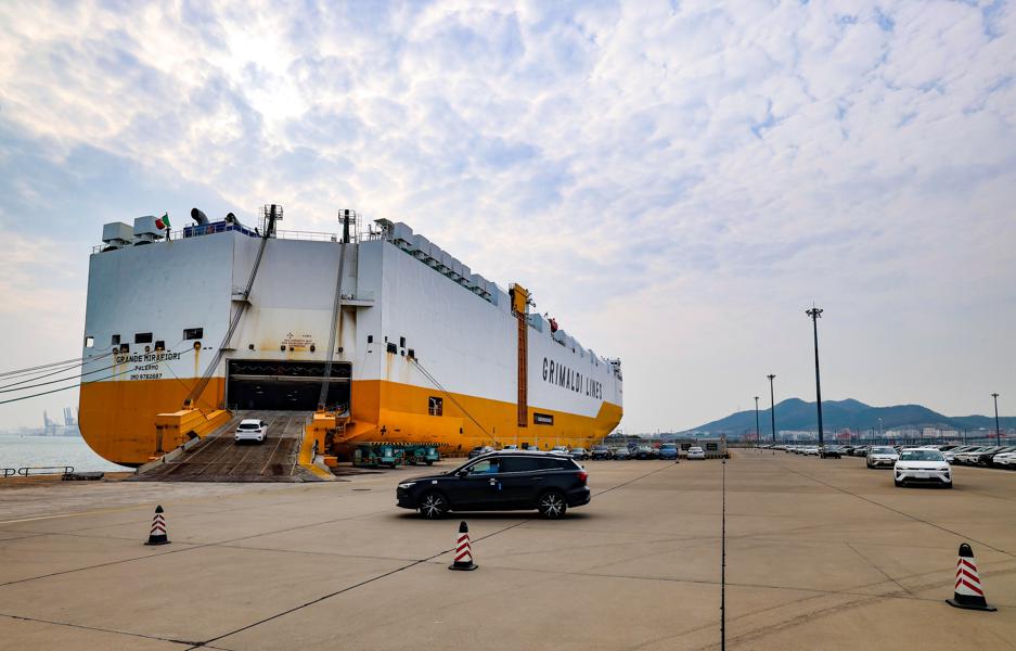 More than 4,700 vehicles were loaded onto a ship — the Grande Mirafiori — on Tuesday at the automobile terminal in Dalian, Liaoning province.