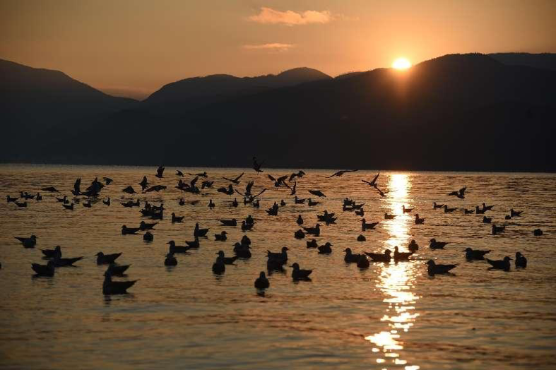 Migratory birds such as black-headed gulls and egrets have arrived at Lugu Lake in Lijiang, Yunnan province for the winter. The azure sky, clear waters, flying birds, and tourists admiring and feeding the birds show mankind and nature living in harmony.