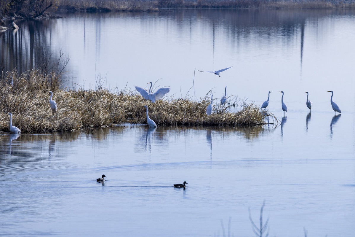 A photo shows a flock of egrets resting in the Jingxin wetland in Hunchun, Yanbian Korean autonomous prefecture in Jilin province. [Photo by Liu Bailing/For chinadaily.com.cn]