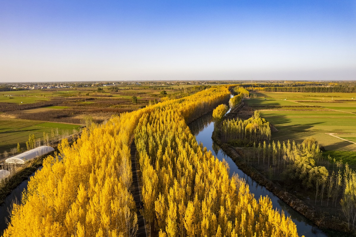 An aerial photo shows the riverside scenery along the Xiaoyi River in Baoding, Hebei province. [Photo by Jiang Dongliang/For chinadaily.com.cn]