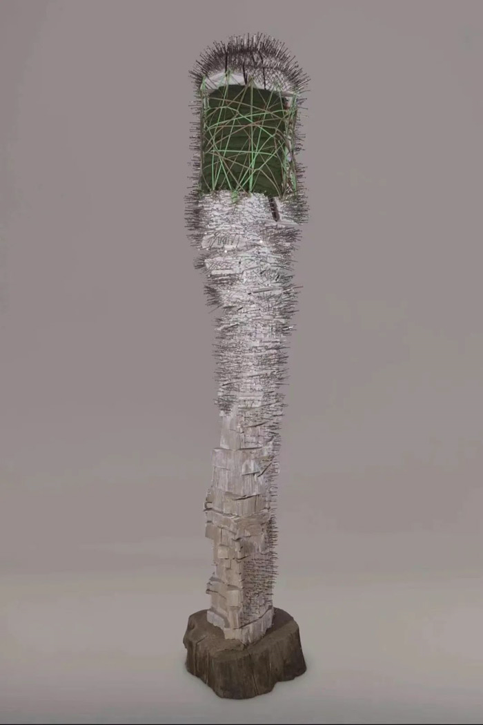 Ziqing Yimu uses materials that often suggest pain, wounds and suffering to address the fragility of life and the importance of love and hope. [Photo provided to China Daily]