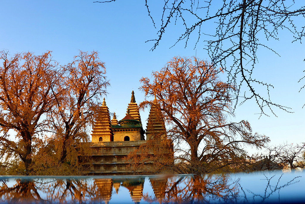 Picturesque scenery of the Five Pagoda Temple (Wuta Temple) in Beijing [Photo/IC]