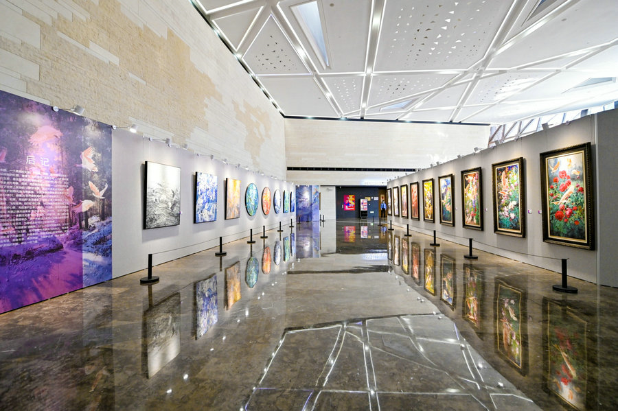 An oil painting exhibition themed on the bird Nipponia Nippon is being held in Shanghai. [Photo provided to chinadaily.com.cn]
