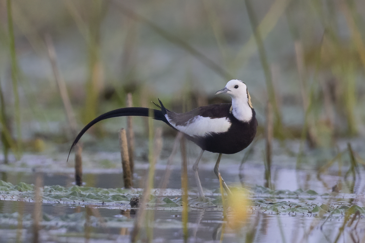A jacana inhabits Baiyangdian Lake. [Photo by Liu Xun/For chinadaily.com.cn]