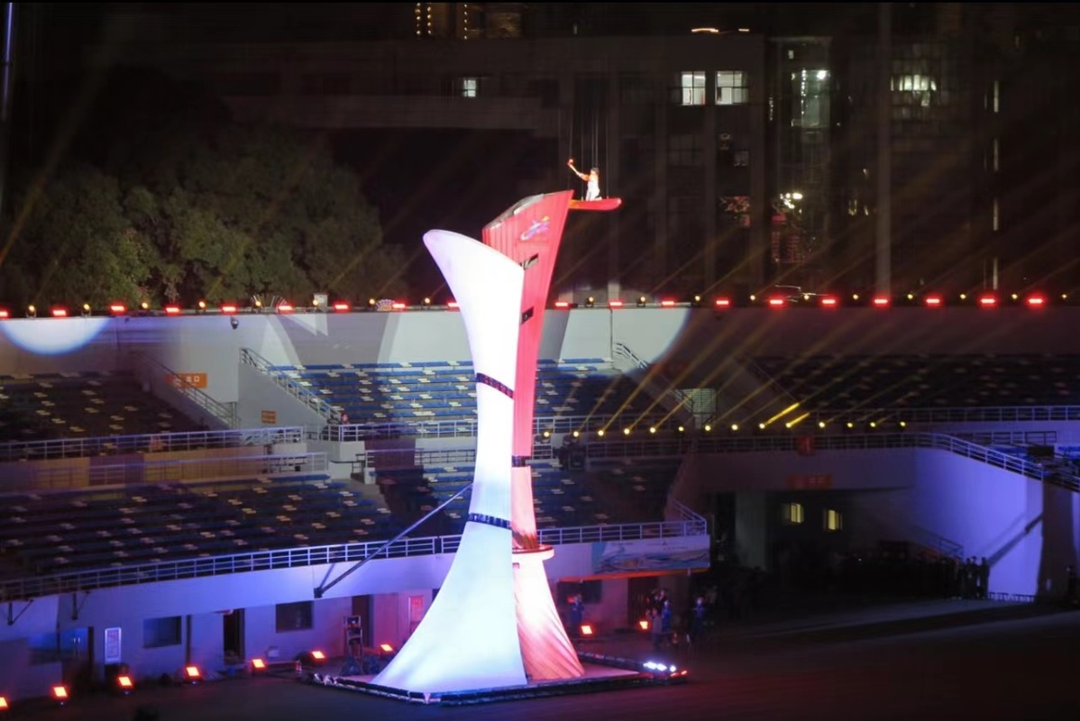 At the opening ceremony, five torchbearers, including Zhao Xiaomei, Tan Yiquan, Shu Wei, Zhong Liang and Peng Bo, relayed the torch. Xu Shixiao, a gold medalist in the women's canoe double 500m at the Tokyo Olympic Games, lighted the main torch.