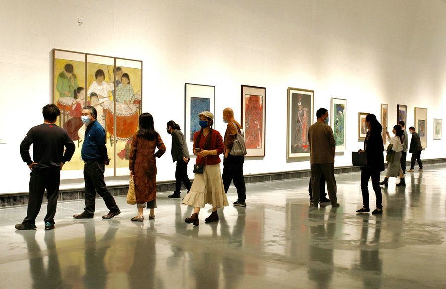 Coloring a New Era, an exhibition running at Suzhou Art Museum, Jiangsu province, shows recent progress of the heavy-color painting. [Photo provided to China Daily]
