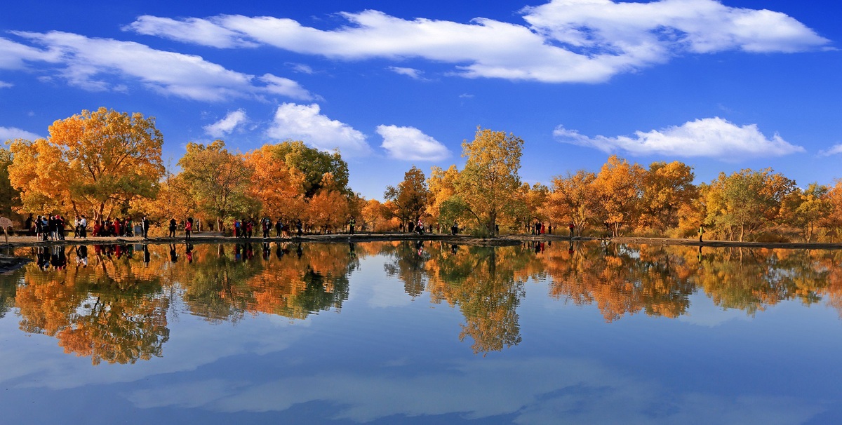A photo shows a forest of golden Euphrates poplar trees in Jinta county of Gansu province. [Photo provided to chinadaily.com.cn]