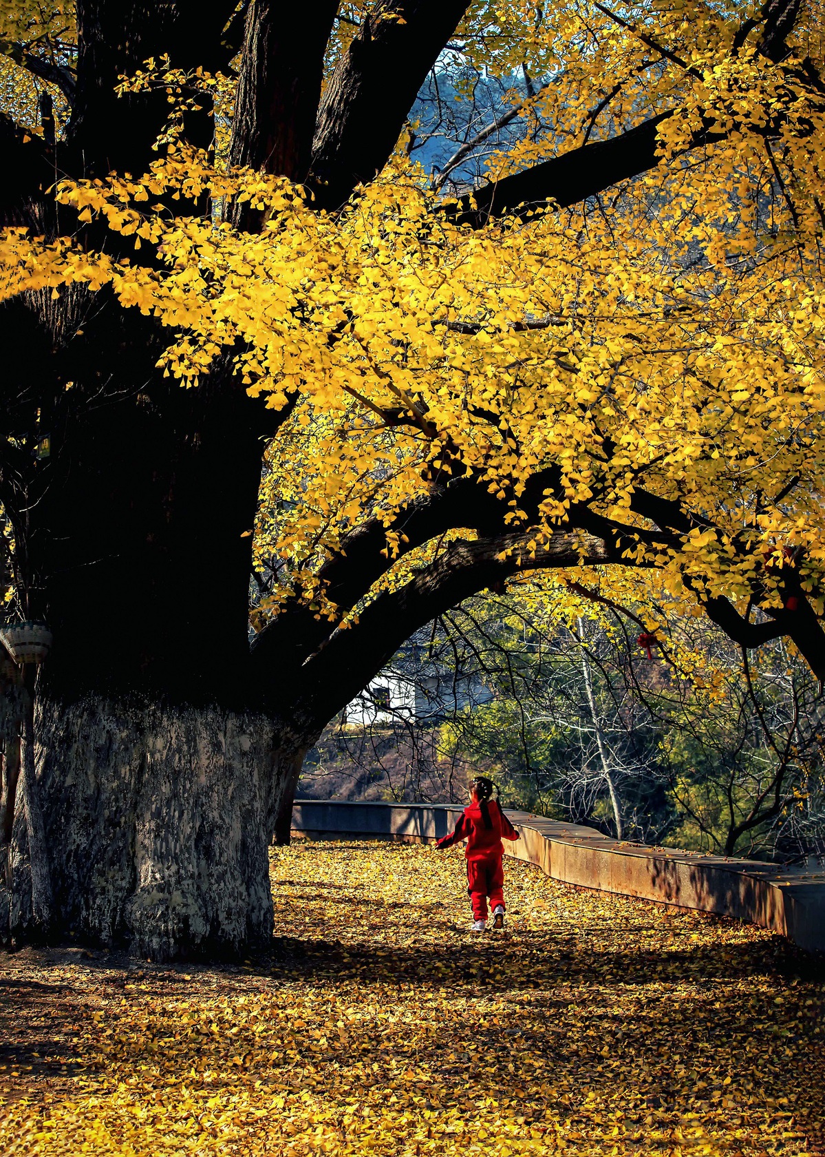 A girl plays jumping rope under a large ginkgo tree in Anlu, Hubei province. [Photo provided to chinadaily.com.cn]