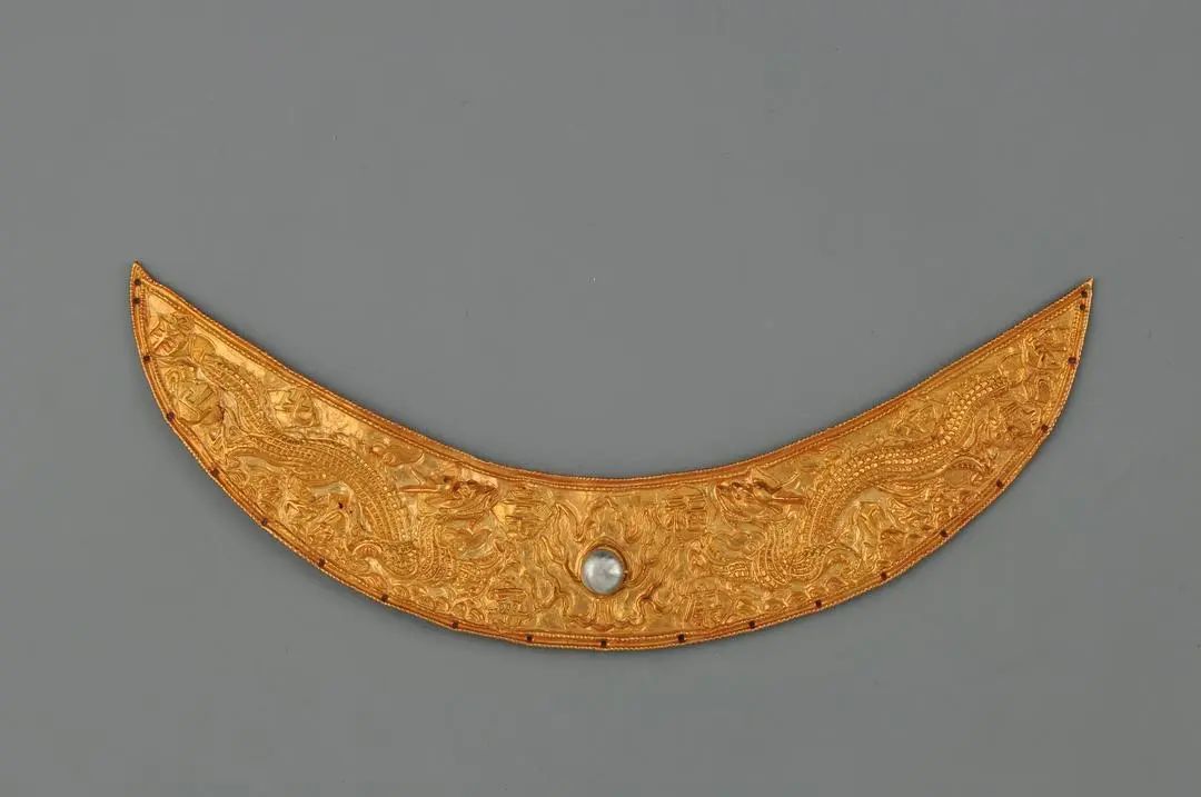 Gilded accessory with double dragon chasing a pearl pattern [Photo/Official WeChat account of the Tianjin Museum]