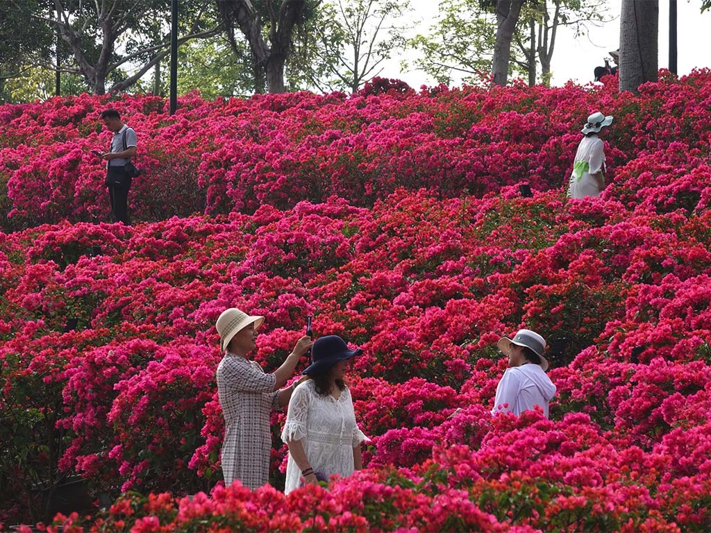Blooming bougainvillea flowers in Qingxiushan Park in Nanning, South China's Guangxi Zhuang autonomous region attracts visitors for picture ops. [Photo/IC]