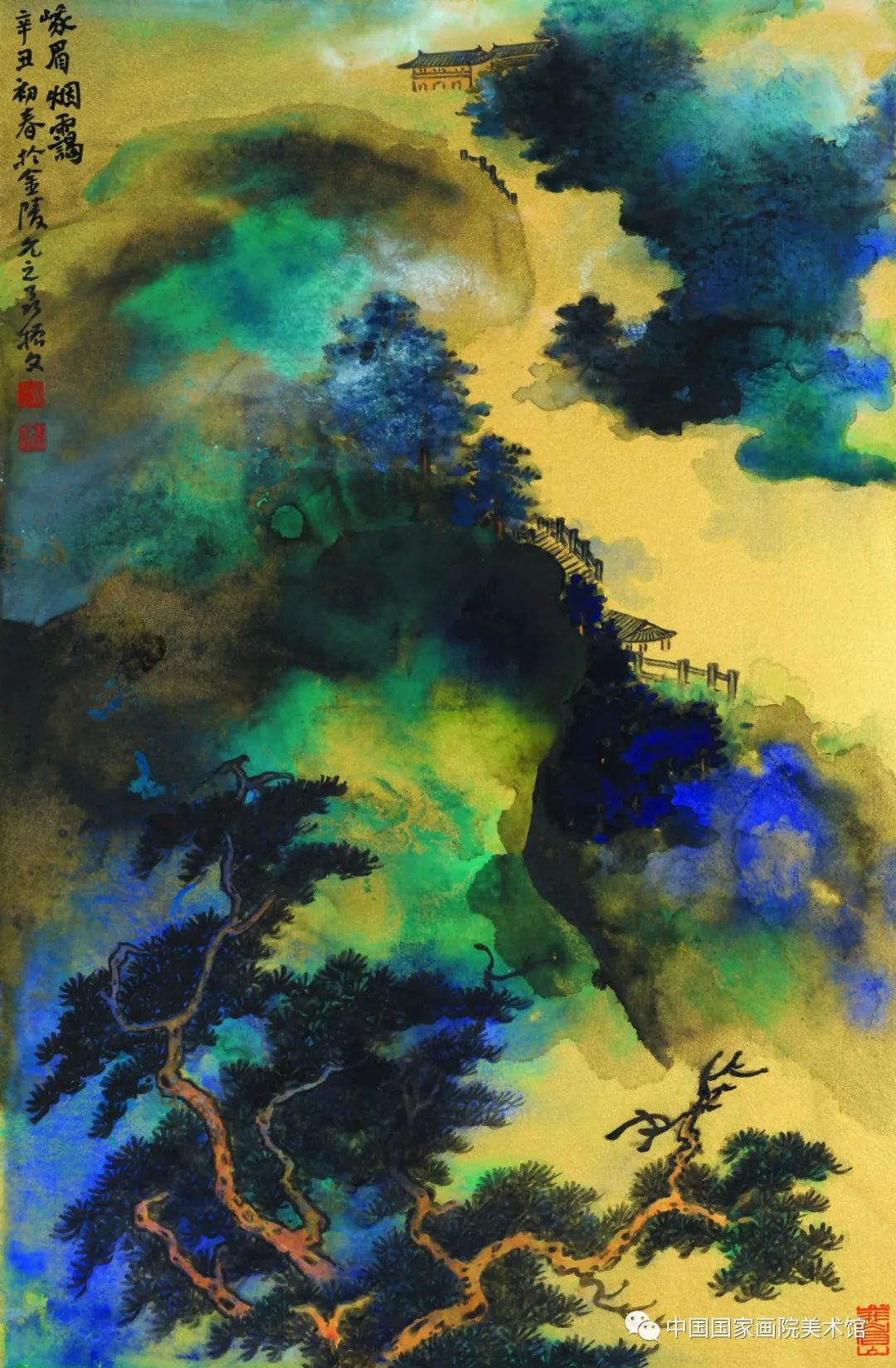 A painting by Nie Zhenwen portrays Mount Emei shrouded in mist. [Photo/Official WeChat account of the Art Gallery of China National Academy of Painting]