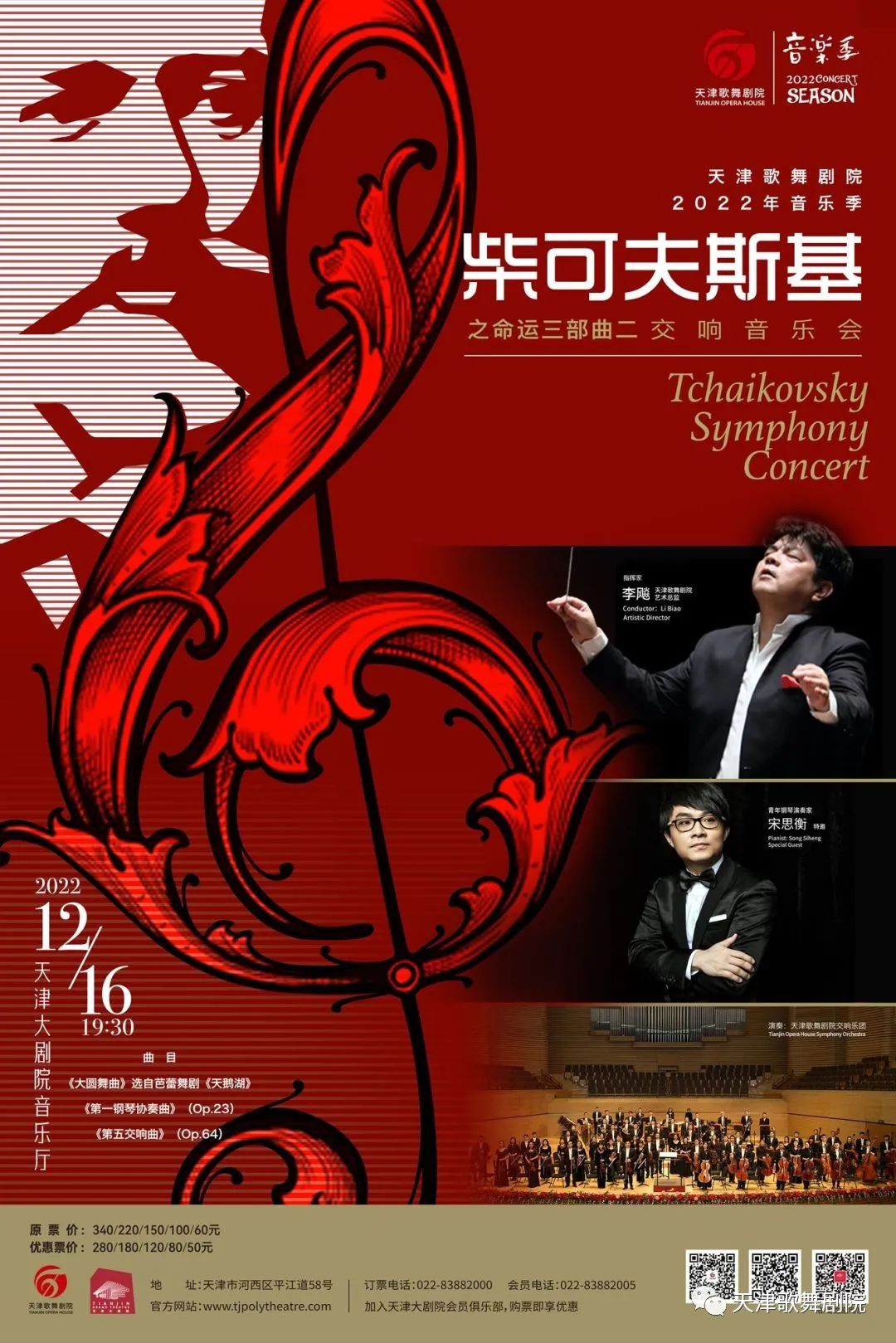 A great show for fans of Tchaikovsky! The Tianjin Song & Dance Theater Orchestra will present a symphony concert at the Tianjin Grand Theater on Dec 16 under the baton of famed conductor Li Biao. Great pieces by Tchaikovsky, including the Symphony No 5, Piano Concerto No 1 and Swan Lake Valse are in the repertoire.