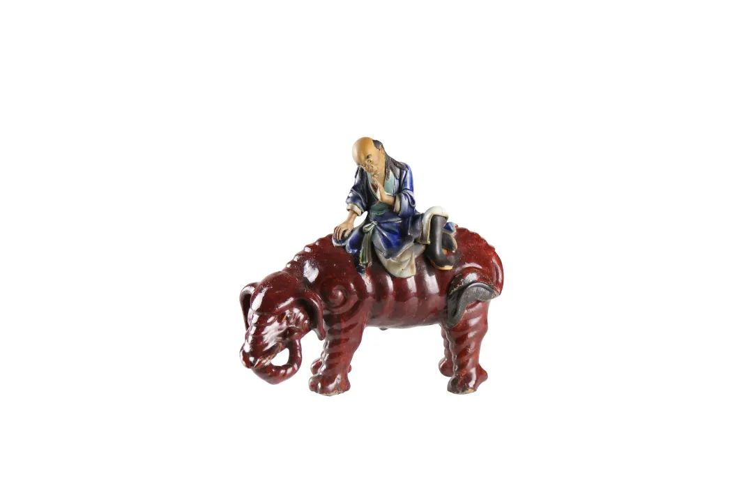 A ceramic sculpture of a man riding an elephant, Qing Dynasty [Photo/Official WeChat account of the New Shi Wan Art Museum]