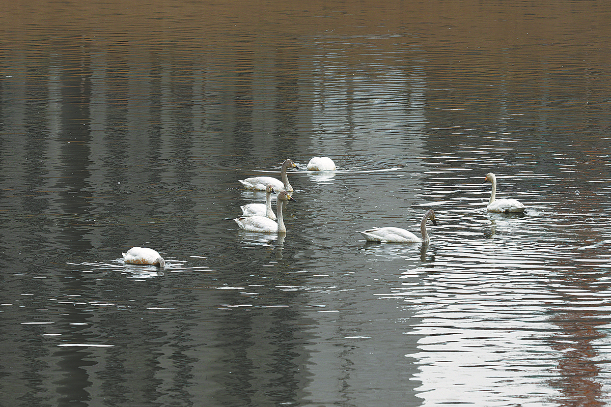Several swans roost in the Maju Bridge section of the Liangshui River on March 17, last year. REN ZHENCHAO/FOR CHINA DAILY