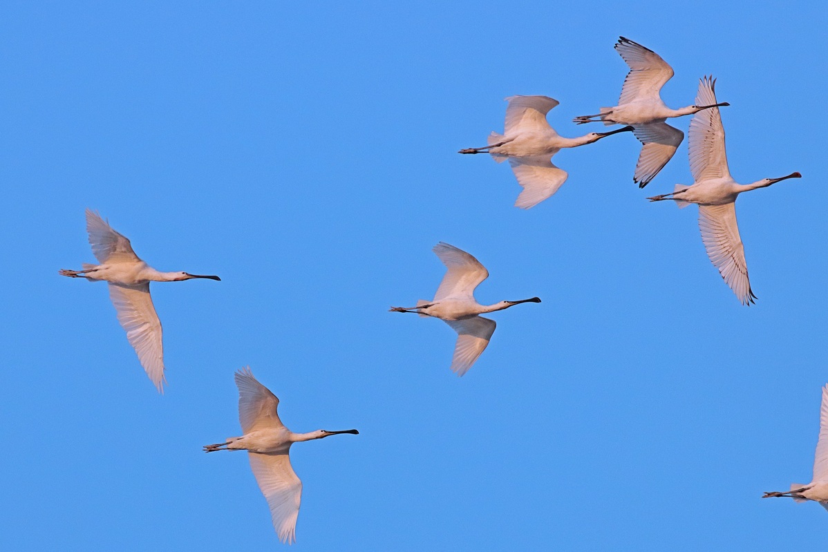 Eurasian Spoonbills are seen at Dongting Lake, Hunan province. [Photo by Song Yucheng/Provided to chinadaily.com.cn]