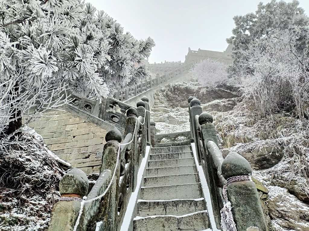 As the weather became colder, the Wudang Mountains in Hubei province became covered with snow again on Nov 30. Trees, flowers, ancient buildings surrounding the mountains were instantly frozen. It looked like a kingdom of ice and snow in a fairy tale.