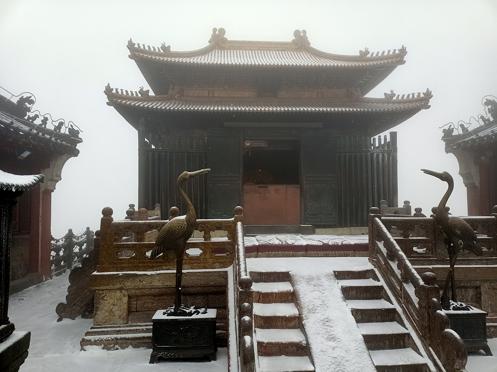 Ancient buildings on top of the Wudang Mountains in Hubei province are covered in snow. [Photo/provided to chinaservicesinfo.com]