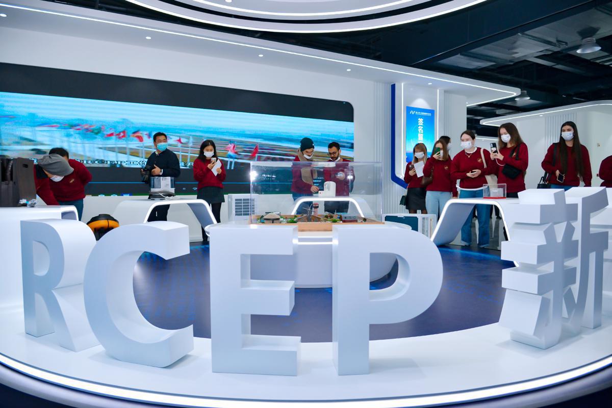 On Friday, 40 students visited the RCEP (Dalian) International Business District, the comprehensive service hall of the Dalian area of the China (Liaoning) Pilot Free Trade Zone, Dalian Haier Industrial Park, Dalian Automobile Terminal and the EX Future Science and Technology Museum.