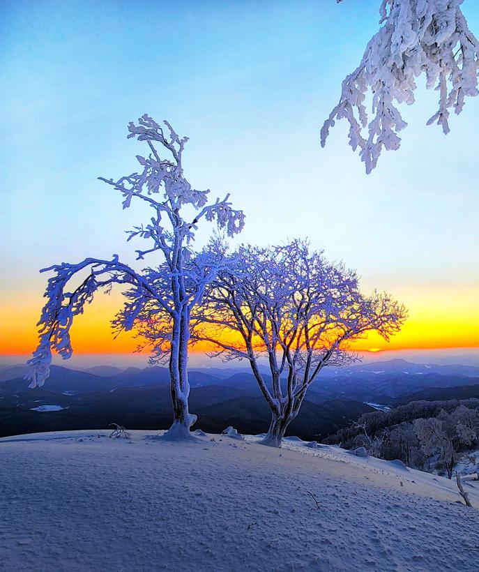 On mountain in Jilin, magical frost appears