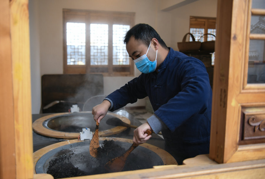 Fu tea, a type of fermented dark tea, has a long history in Xianyang of Northwest China's Shaanxi province. Fu tea features fermented golden probiotics, which is praised as "black gold along the Silk Road". The traditional tea making technique has 14 steps.
