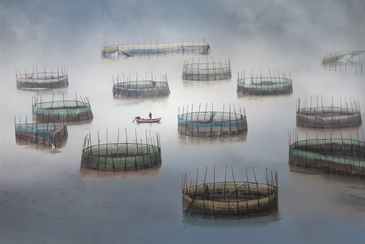 In East China’s Fujian province, aquaculture generates an important revenue. The trade also provides a stunning backdrop for photography with its cages and nets that cover the coast for miles and miles.