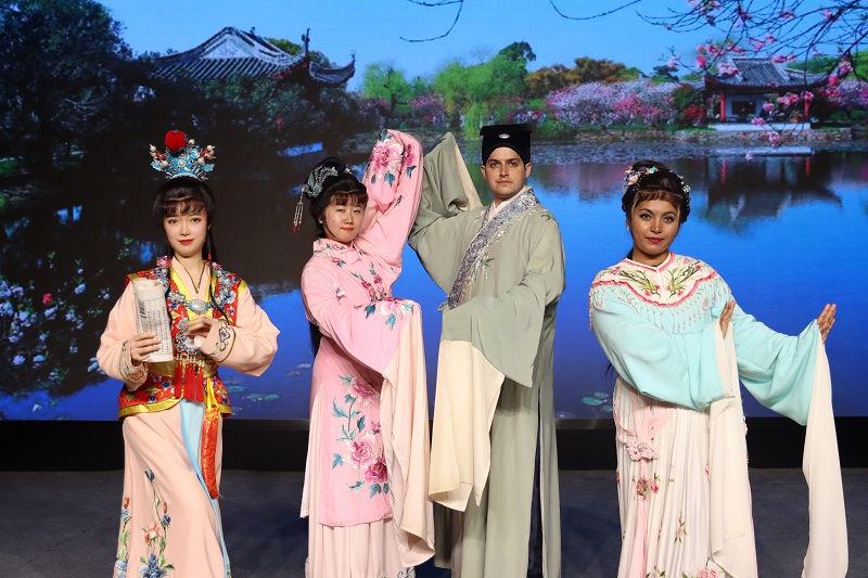 The expats then tried their hands at doing some simple and classic gestures of Wuxi Opera while dressed in traditional costumes at the Wuxi Opera Art Center.