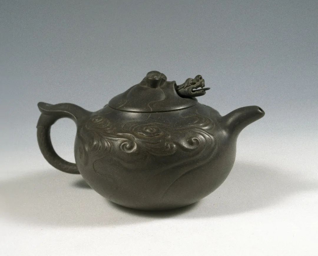 Green clay pot with dragon and cloud patterns made by Zhu Kexin, Republic of China (1911-1949), from the collection of the Nanjing Museum [Photo/Official WeChat account of the Huai’an Museum]