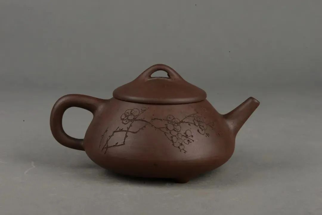 Yixing clay pot with plum blossom patterns made by Zhu Shimei, late Qing Dynasty (1644-1911), from the collection of the Nanjing Museum [Photo/Official WeChat account of the Huai’an Museum]