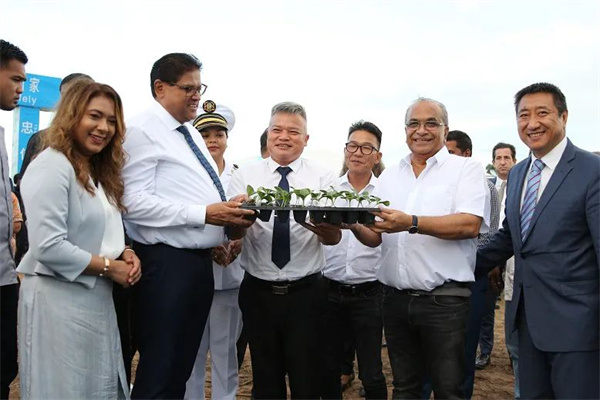 The China-aided agricultural technology assistance project in Suriname started construction in Salamaka on Nov 21. Chinese Ambassador to Suriname Han Jing, Surinamese President Chandrikapersad Santokhi, and government officials of Suriname as well as representatives of China-funded institutions in Suriname attended the groundbreaking ceremony.