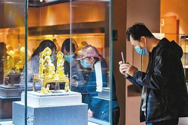 Visitors are fascinated by the rich cultural relics on show at Xi'an Museum. [Photo/Xi'an municipal government's WeChat account]