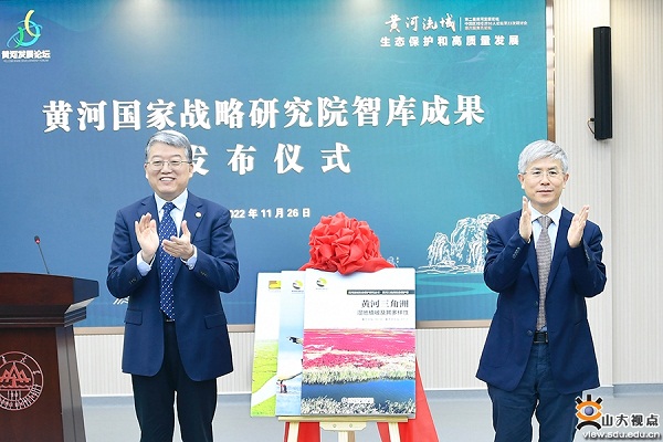 After the opening ceremony, the forum announced the achievements of the think tank of the Yellow River National Strategy Research Institute. Li Shucai, president of SDU, and Guo Xinli published an annual report on the environmental protection and high-quality development of the Yellow River Basin in 2021 and a research series on the Yellow River Basin's environmental protection.