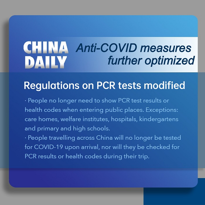 China's recent optimization of its COVID-19 measures is aimed at adjusting to the nation's new epidemic situation and the latest patterns of viral mutations, and at making more efficient use of its resources so that people can remain protected while living normal lives, a senior health expert said on Wednesday.