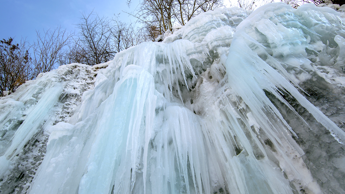 Icicles on cliffs, rime frosted trees and blanket of snow on the ground have created a white fairyland in the Wangtian'e Mountain Scenic Area in Changbai county, Jilin province. [Photo by Jin Guangshan/For chinadaily.com.cn]